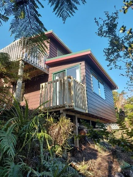 The house is a Stewart Island ‘character’ home in a native bush setting. The house is 10 – 15 minutes’ walk, up Golden Bay Road and Leonard St from Oban village. Both roads have moderately steep stretches. Pick-up from air or ferry services can be arranged.